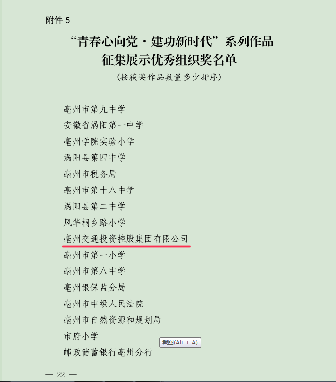 近日,團市委舉辦的“青春心向黨建功新時代”系列作品征集展示評選結果揭曉,集團團委推薦的作品中,有4篇文學作品、2張主題圖片獲獎,其中一等獎1個,二等獎2個,三等獎2個,優(yōu)秀獎1個;集團獲優(yōu)秀組織獎。