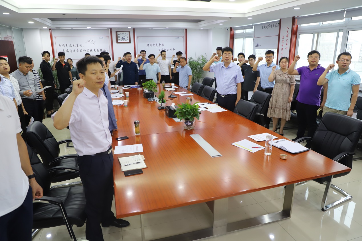 “我宣誓:牢固樹立安全發(fā)展理念,強(qiáng)化安全生產(chǎn)‘紅線意識(shí)’。做到安全生產(chǎn)責(zé)任到位、安全投入到位、安全培訓(xùn)到位、安全管理到位、應(yīng)急救援到位……”參會(huì)人員首先齊聲誦讀了交控集團(tuán)安全生產(chǎn)宣誓詞。每一位宣誓者均飽含激情、聲音洪亮,誓言字字鏗鏘,無不表達(dá)了交控人保證施工安全生產(chǎn),捍衛(wèi)質(zhì)量的決心。