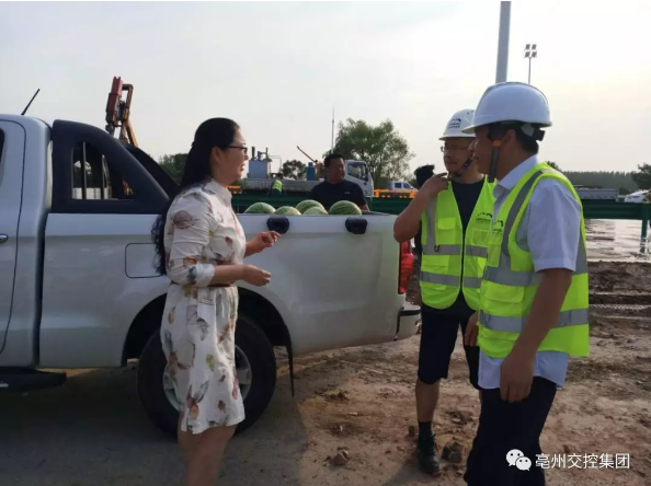 為切實(shí)維護(hù)高溫期間廣大施工人員的身體健康,改善施工人員的生活生產(chǎn)條件,確保項(xiàng)目生產(chǎn)工作的正常運(yùn)行,近日,集團(tuán)推出高溫天氣“送清涼”活動。6月30日下午,集團(tuán)辦公室副主任宋燕帶隊(duì)到“送清涼”活動第一站——S309收費(fèi)站項(xiàng)目進(jìn)行慰問,項(xiàng)目承建單位和諧中建總經(jīng)理張彬根代表現(xiàn)場工人接收慰問品。