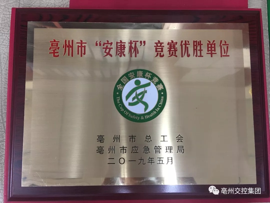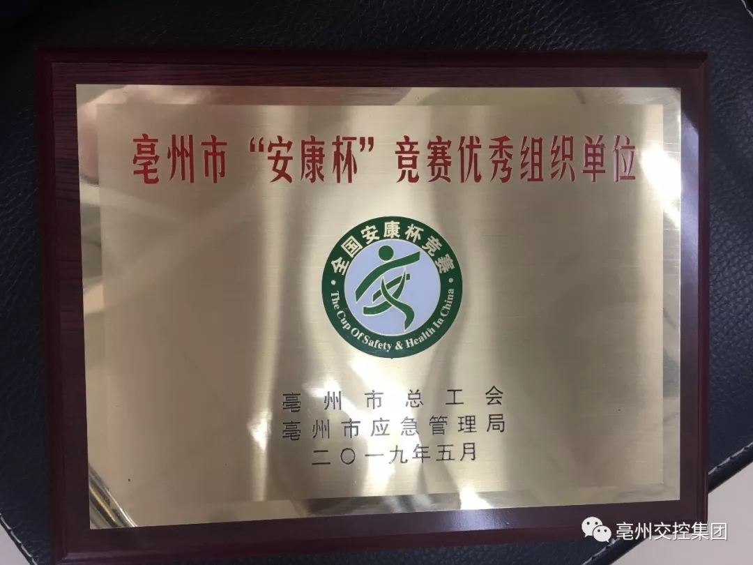 交控集團(tuán)榮獲亳州市“安康杯”競賽優(yōu)勝單位;亳州公共交通有限責(zé)任公司、亳州市公務(wù)用車調(diào)度中心榮獲亳州市“安康杯”競賽優(yōu)秀組織單位;交控集團(tuán)安委辦徐玉春同志、安徽安行天下駕駛培訓(xùn)股份有限公司朱明義同志、亳州建設(shè)安天汽車貿(mào)易服務(wù)徐賽同志榮獲亳州市“安康杯”競賽先進(jìn)個(gè)人稱號。