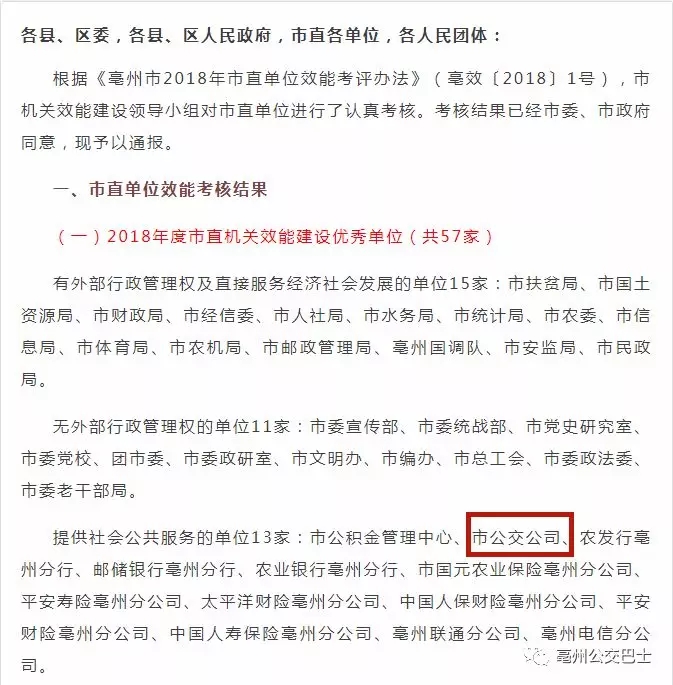 近日,亳州市委、市政府對(duì)2018年度市直單位效能考核結(jié)果進(jìn)行了通報(bào),公交公司被評(píng)為“市直機(jī)關(guān)效能建設(shè)優(yōu)秀單位”,連續(xù)兩年獲此殊榮。