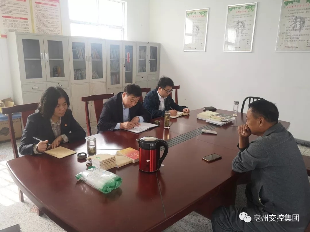 11月4日,交控集團(tuán)黨委書(shū)記、董事長(zhǎng)王鍇深入利辛縣新張集鄉(xiāng)陽(yáng)光村開(kāi)展調(diào)研走訪(fǎng),征集貧困戶(hù)微心愿,共商精準(zhǔn)脫貧下步工作。集團(tuán)組織人事部負(fù)責(zé)人王平、村兩委班子成員等參加扶貧調(diào)研。