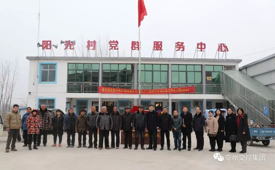 1月4日,集團黨委書記、董事長王鍇帶隊赴定點扶貧點利辛縣新張集鄉(xiāng)陽光村,宣講黨的十九屆四中全會精神,開展扶貧走訪慰問。集團財務(wù)總監(jiān)董雷,各部室、子公司相關(guān)負責人等參加慰問活動。