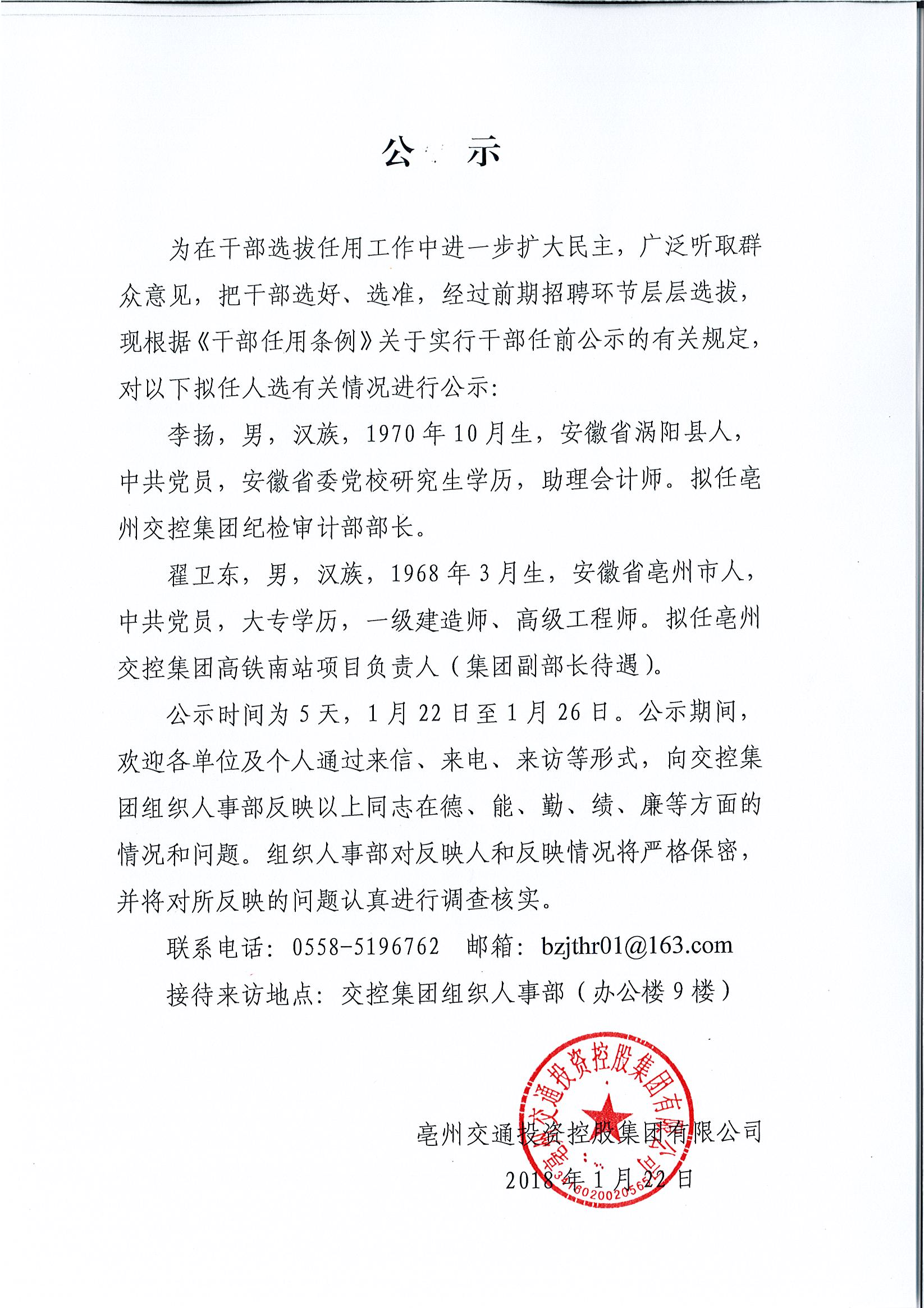 亳州交控集團(tuán)干部任命公示
