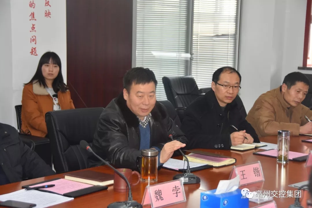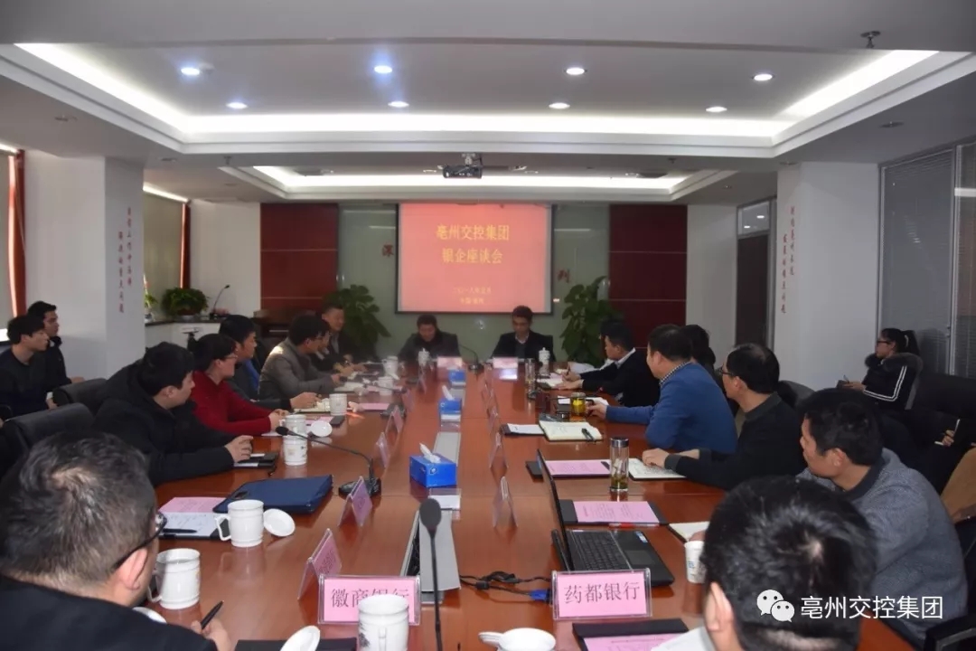 1月30日下午3點,集團在八樓會議室召開亳州交控集團銀企座談會。會議邀請了市交通局、市國資委及徽商銀行、工商銀行、中國銀行、農(nóng)業(yè)銀行、建設銀行、農(nóng)業(yè)發(fā)展銀行、藥都銀行等10家銀行代表與會。
