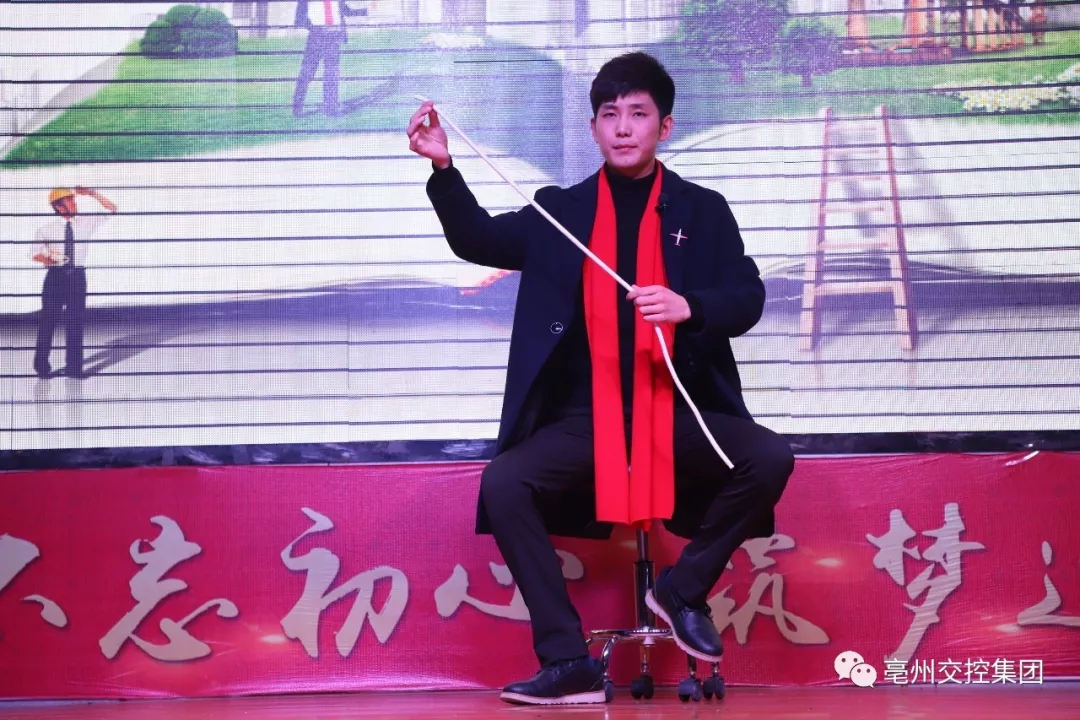 歡快的開場舞蹈《共圓中國夢》將新年的喜悅氣氛烘托到了極致,舞動(dòng)的紅色象征著紅火火的幸福日子;歌曲《不忘初心》、《紅旗飄飄》、手語合唱《國家》、詩朗誦《不忘初心,繼續(xù)前行》等致敬十九大、歌頌共產(chǎn)黨的精彩節(jié)目博得全場觀眾一片喝彩。豫劇《當(dāng)干部就應(yīng)該能吃虧》、《歌曲串燒》、相聲《今天不一樣》、快板《贊美公交》、樂器書法《紅歌聯(lián)奏》及舞蹈《江南雨》等節(jié)目充分展現(xiàn)了交控集團(tuán)員工多才多藝、立足崗位、建功立業(yè)、積極向上的精神風(fēng)貌和時(shí)代風(fēng)采。魔術(shù)《中國夢》和《不忘初心》將晚會(huì)推向了高潮。