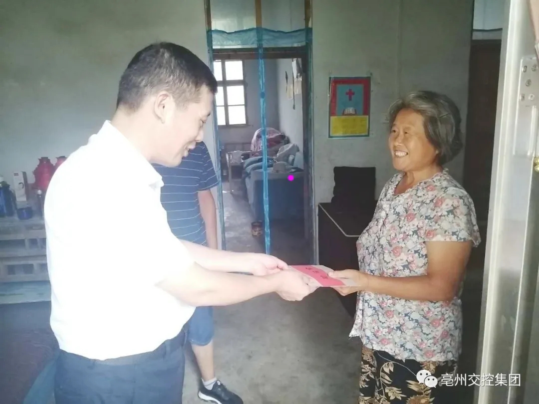 近日,交控集團結(jié)合“單位包村”工作,集團黨委書記、董事長宋保眾一行到利辛縣新張集鄉(xiāng)陽光村走訪慰問困難軍烈屬,并送去慰問金。