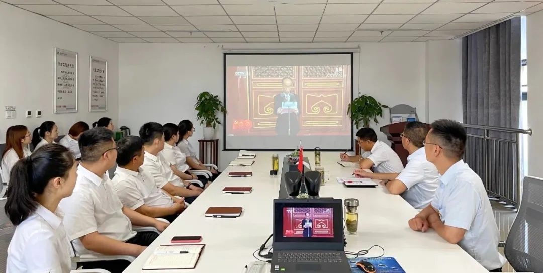 7月1日上午7點半,集團本部、所屬子公司全體干部職工早早來到會議室,著裝整齊、精神振作,認真觀看大會盛況,仔細聆聽習近平總書記重要講話。
