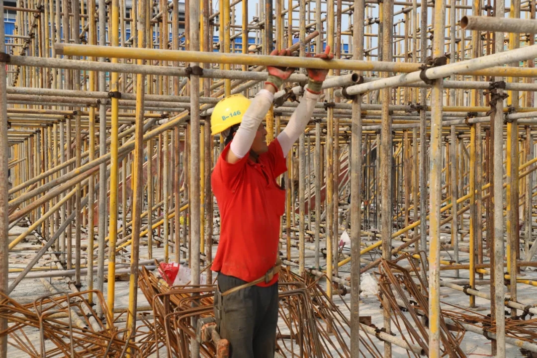 近日,亳州高鐵南站金融商務中心項目施工現(xiàn)場,工人正緊鑼密鼓地進行施工。
