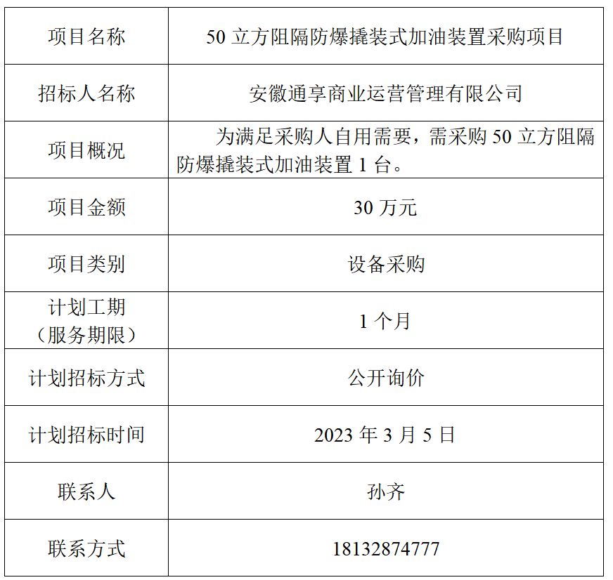 為便于潛在投標人及時了解招標信息,現(xiàn)將安徽通享商業(yè)運營管理有限公司的招標計劃發(fā)布如下: