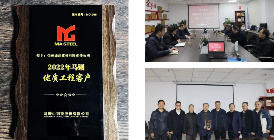 3月22日上午,馬鞍山鋼鐵股份有限公司營(yíng)銷中心李元水一行蒞臨通潤(rùn)建材公司,授予其“馬鋼優(yōu)質(zhì)工程客戶”稱號(hào)。