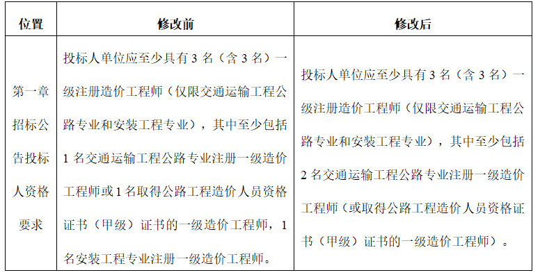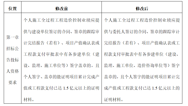 (二)關(guān)于投標(biāo)人資格要求中造價工程師的修改