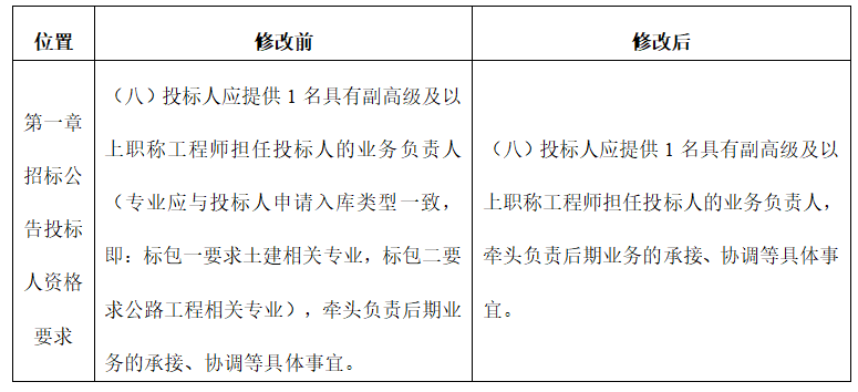 (四)關(guān)于投標(biāo)人資格要求中業(yè)務(wù)負(fù)責(zé)人專業(yè)的修改