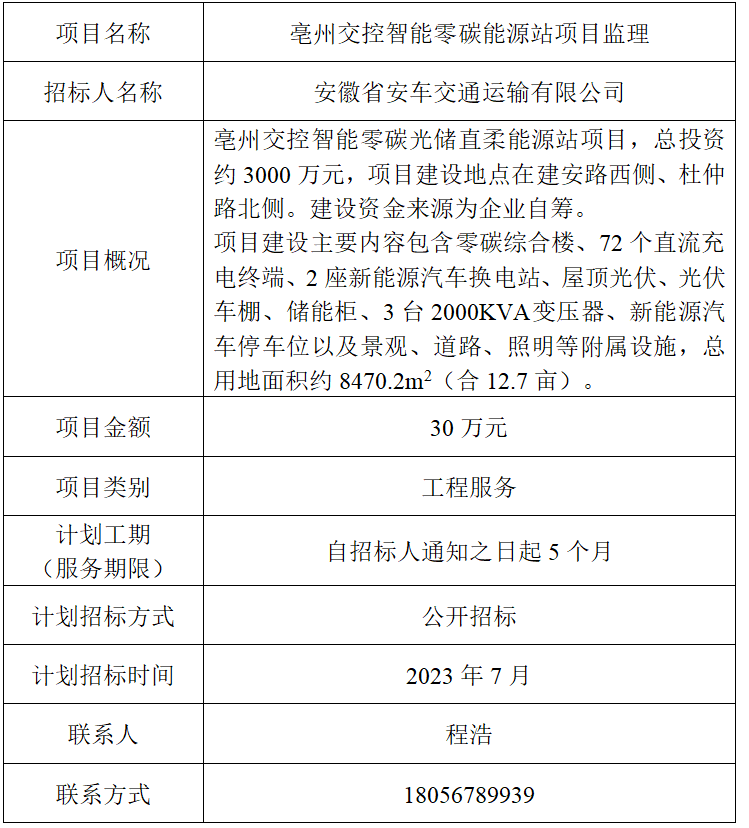 為便于潛在投標(biāo)人及時了解招標(biāo)信息,現(xiàn)將安徽省安車交通運(yùn)輸有限公司(招標(biāo)人名稱)的招標(biāo)計劃發(fā)布如下: