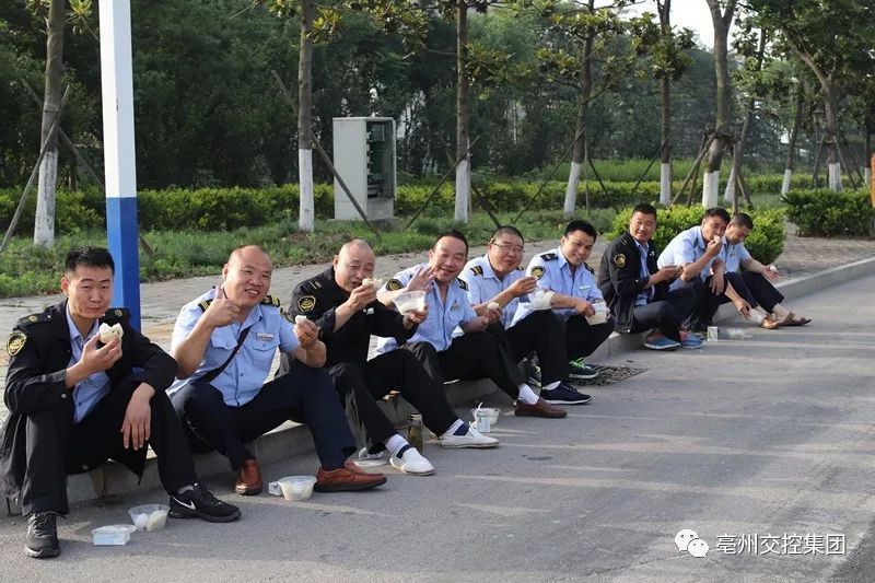 ▲將參賽人員及志愿者全部運送完畢后,駕駛員及相關保障人員才開始吃早餐