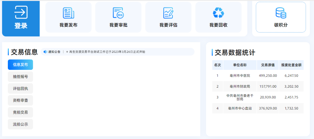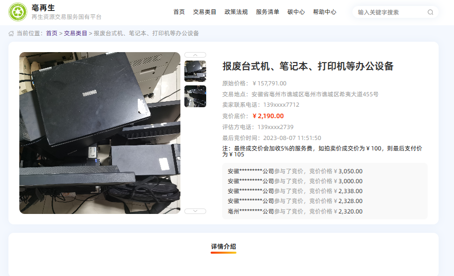 作為市級物資循環(huán)利用交易平臺,目前,“亳再生”交易平臺主要聚焦我市行政事業(yè)單位、市屬企業(yè)等資產(chǎn)處置需求,整合供求信息,精準匹配內(nèi)容,協(xié)助完成報廢資產(chǎn)的回收處理工作,確保國有資產(chǎn)保值增值。