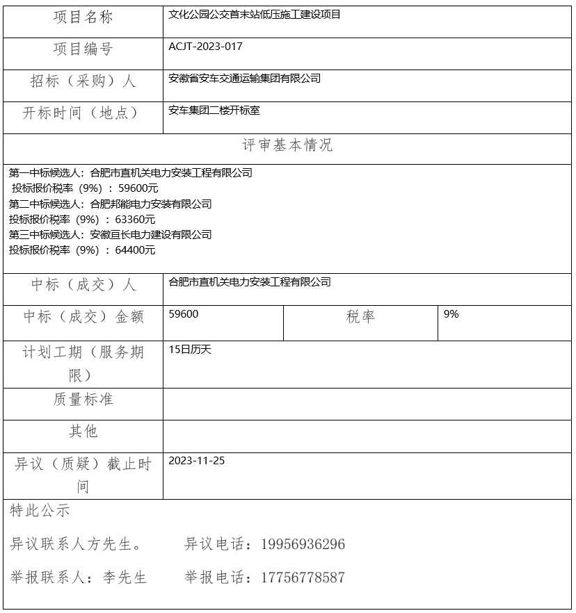 文化公園公交首末站低壓施工建設(shè)項(xiàng)目中標(biāo)結(jié)果公示