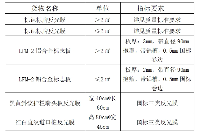 (一)項(xiàng)目名稱:省道309小修保養(yǎng)工程標(biāo)識(shí)標(biāo)牌及反光膜采購項(xiàng)目