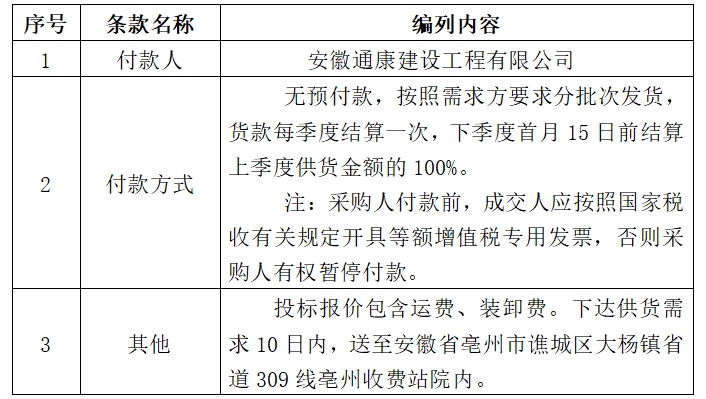 (二)響應(yīng)文件送達(dá)地點(diǎn):安徽省亳州市譙城區(qū)大楊鎮(zhèn)省道309線亳州收費(fèi)站;