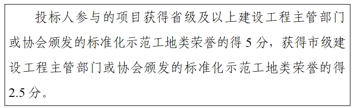 關(guān)于招標文件第三章評標辦法(綜合評標法)2.2.4(2)企業(yè)資信評分標準,企業(yè)榮譽中1.投標人參與的項目獲得省級及以上安全生產(chǎn)標準化示范工地或質(zhì)量標準化示范工地的,每個項目得5分;獲得市級安全生產(chǎn)標準化示范工地或質(zhì)量標準化示范工地的,每個項目得2.5分。省級建筑施工標準化文明示范工地,是否每個項目得5分,市級建筑施工標準化文明示范工地,是否每個項目得2.5分?