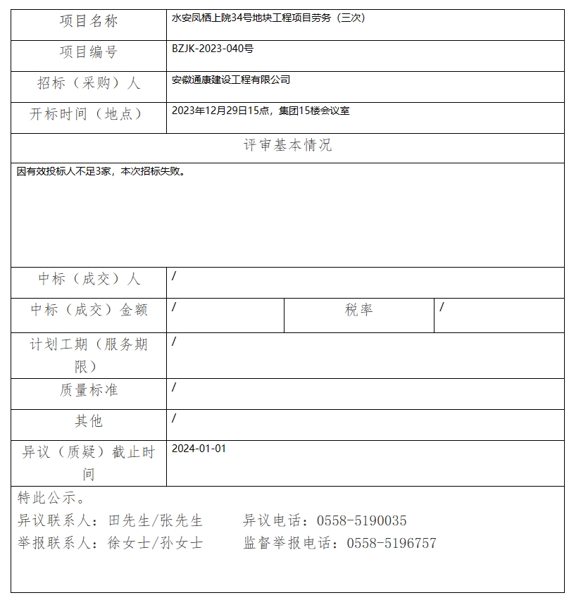 水安鳳棲上院34號地塊工程項目勞務(三次)中標(成交)結(jié)果公示