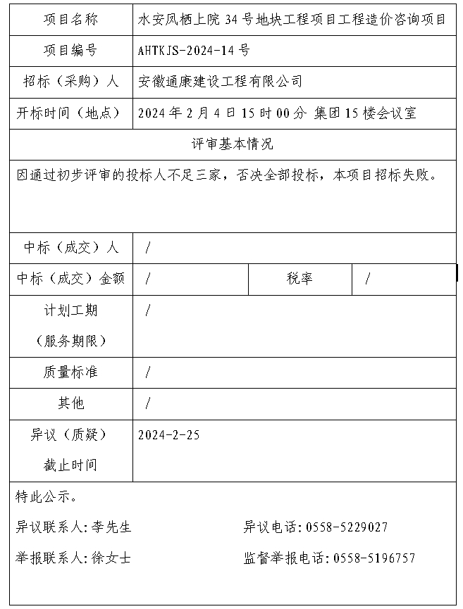 水安鳳棲上院34號地塊工程項目工程造價咨詢項目中標(成交)結(jié)果公示