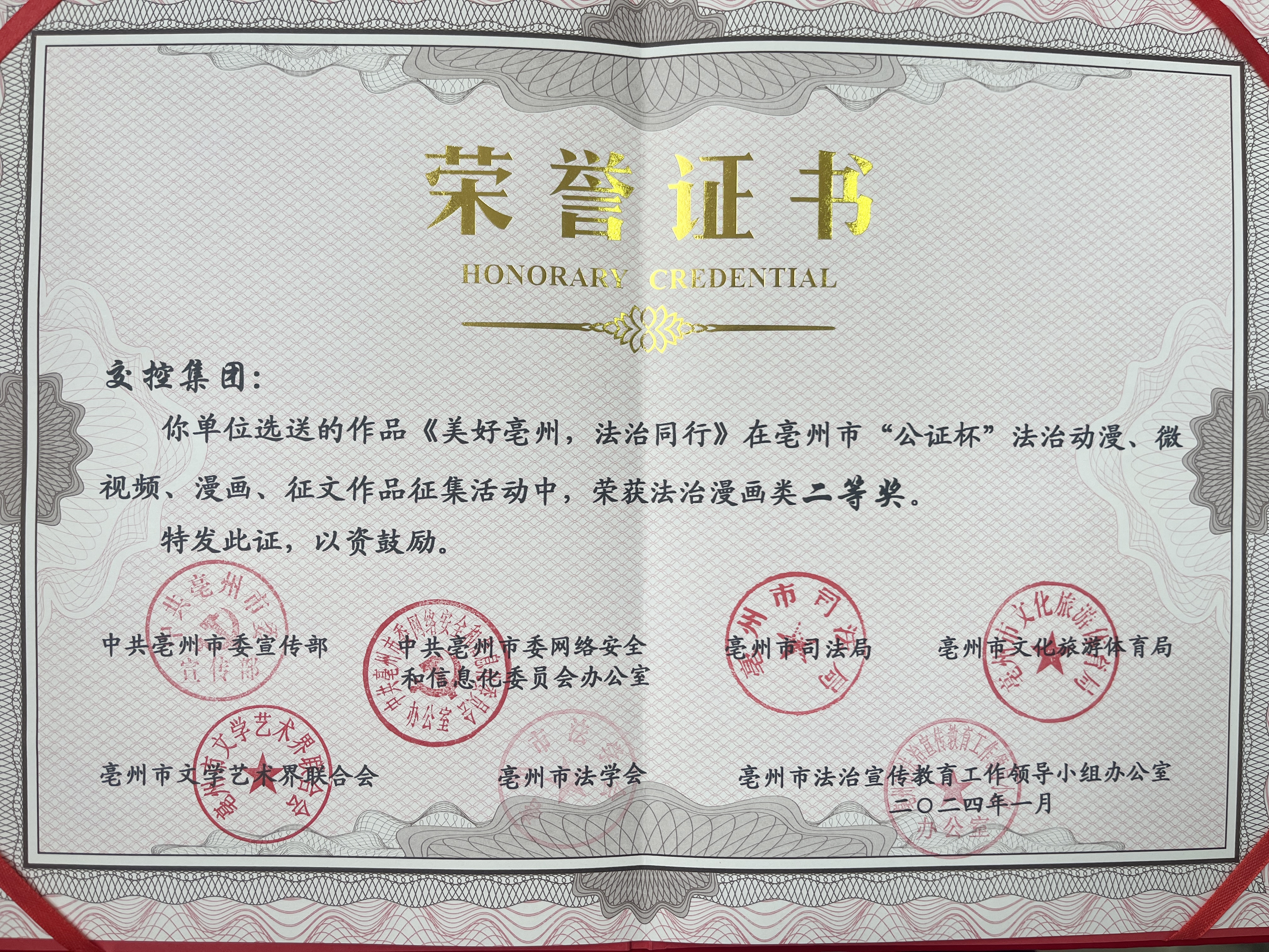 近日,亳州市委宣傳部、市委網(wǎng)信辦、市司法局、市文旅體局、市文聯(lián)、市法學(xué)會、市法宣辦聯(lián)合發(fā)文通報(bào)了亳州市“公正杯”法治動漫、微視頻、漫畫、征文作品征集活動獲獎(jiǎng)情況,交控集團(tuán)參賽作品《美好亳州 法治同行》漫畫在全市245部(篇)參賽作品中脫穎而出,榮獲漫畫類二等獎(jiǎng)。