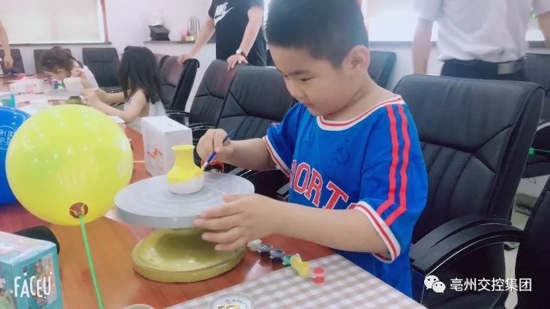 活動在拉胚機的轉(zhuǎn)動聲和孩子們的歡笑聲中開始了,職工子女和家長一起感受拉胚機的轉(zhuǎn)速,在現(xiàn)場老師的指導(dǎo)下體驗團泥和打洞。簡單的操作后就是孩子們?nèi)我獍l(fā)揮想象的時光,在制作中孩子們都專心致志地學(xué)習(xí),親身體驗陶瓷制作工藝中拉坯、成形、書畫等環(huán)節(jié),不僅接觸“從泥到陶再到精美藝術(shù)品”的制作過程,還在輕松歡樂的氛圍下,增加了對傳統(tǒng)文化的認識和了解。最后,一個個精致、精巧、精心制作的作品呈現(xiàn)在我們面前。 活動現(xiàn)場,工會還準備了水果、零食等小食供大家享用,為小朋友們準備了小禮物。