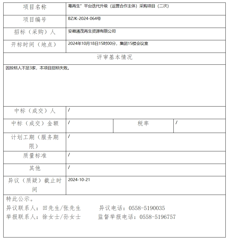 亳再生”平臺迭代升級(運營合作主體)采購項目(二次)中標(biāo)(成交)結(jié)果公示