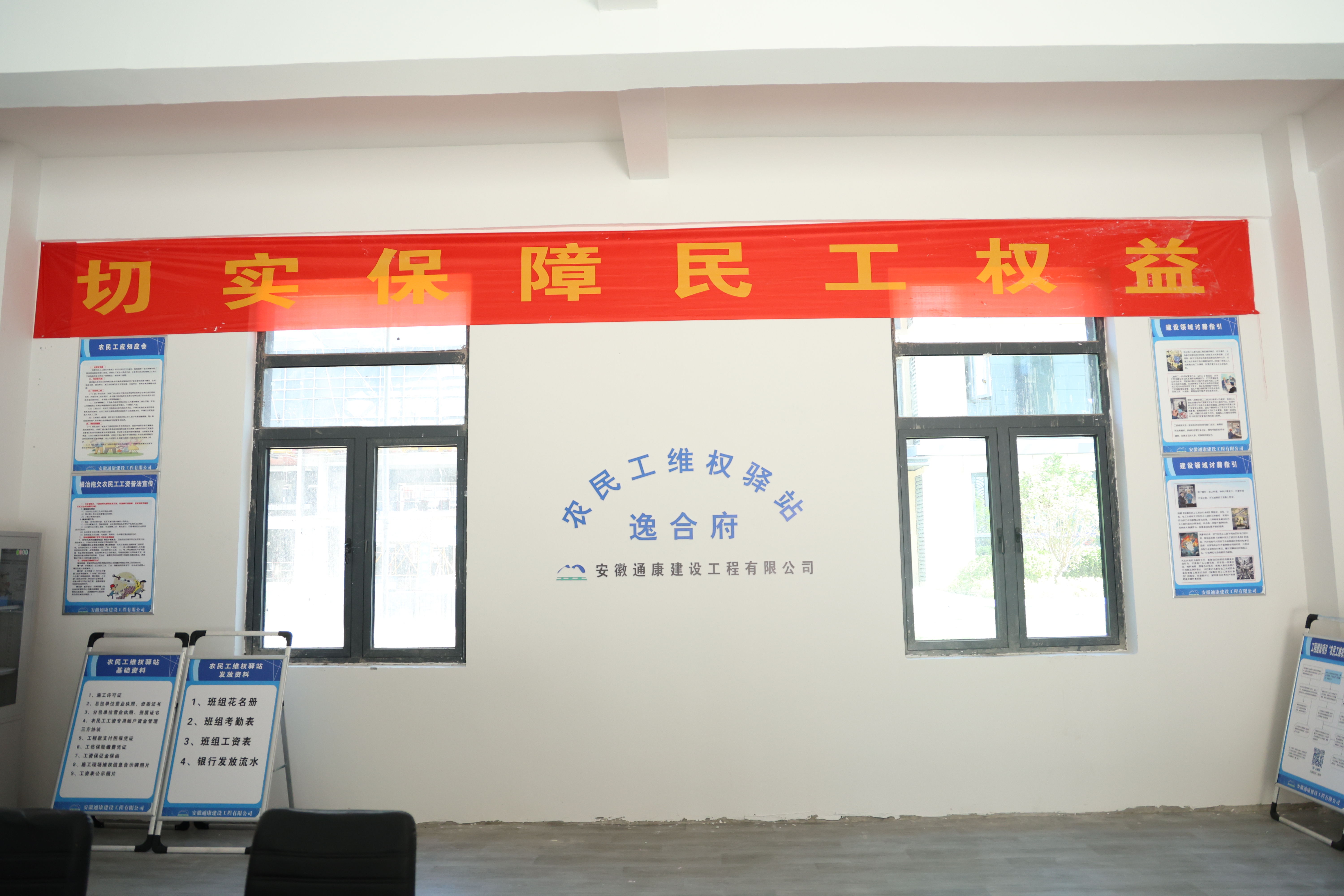 為進(jìn)一步保障農(nóng)民工群體權(quán)益,近日,通康公司在亳州逸合府一期項(xiàng)目現(xiàn)場(chǎng),正式設(shè)立了“農(nóng)民工維權(quán)驛站”,旨在全方位保障工友的維權(quán)需求,讓工友們無憂工作。
