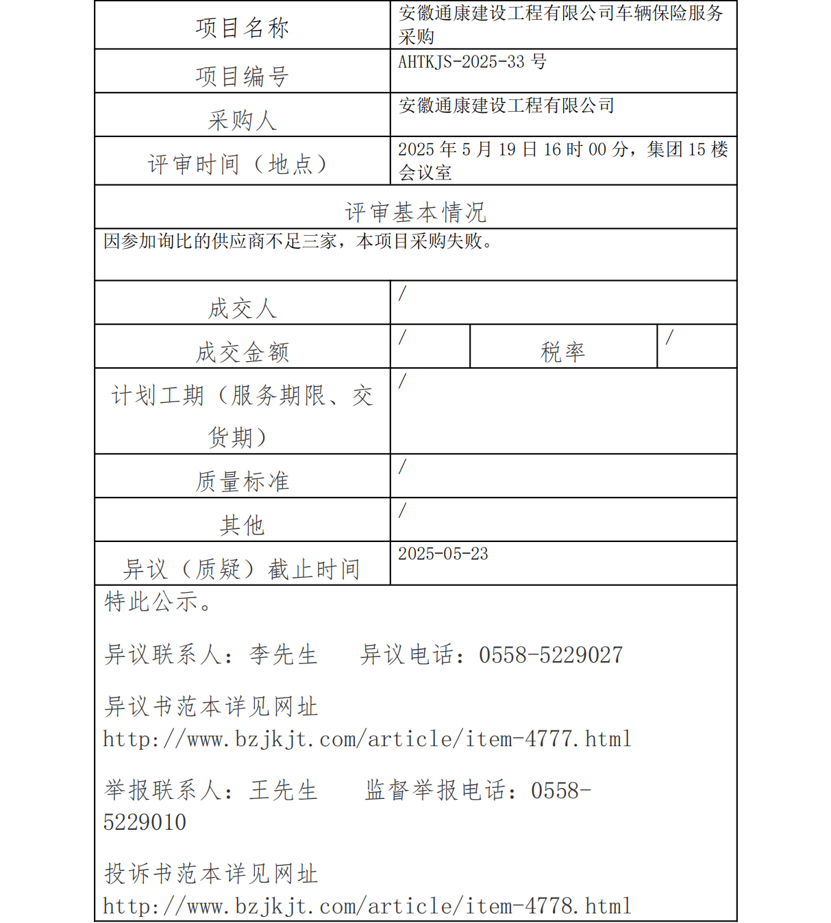 安徽通康建設(shè)工程有限公司車輛保險服務(wù)采購成交結(jié)果公示