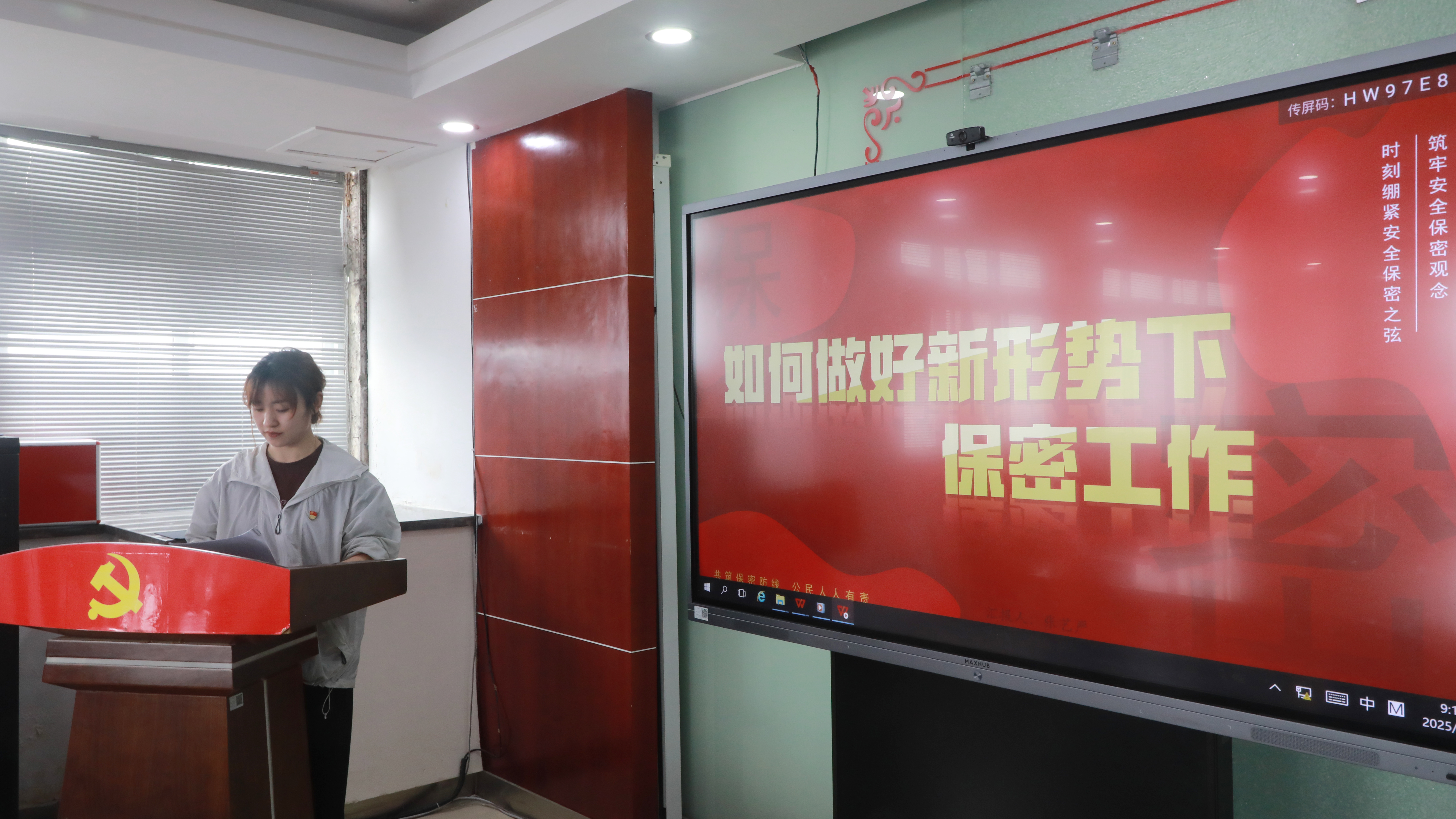 支部黨員張藝嚴(yán)同志以《如何做好新形勢下保密工作》為題講授微型黨課,圍繞保密工作當(dāng)前面臨的形勢、保密工作易出現(xiàn)的問題、如何做好保密工作,結(jié)合失泄密典型案例,詳細(xì)梳理總結(jié)了日常工作中存在的保密風(fēng)險點和失泄密危害,并就如何做好保密工作提出了三方面具體舉措,教育引導(dǎo)全體黨員干部牢固樹立保密“紅線”意識和“底線”思維,自覺履行保密義務(wù),切實筑牢保密安全防線。