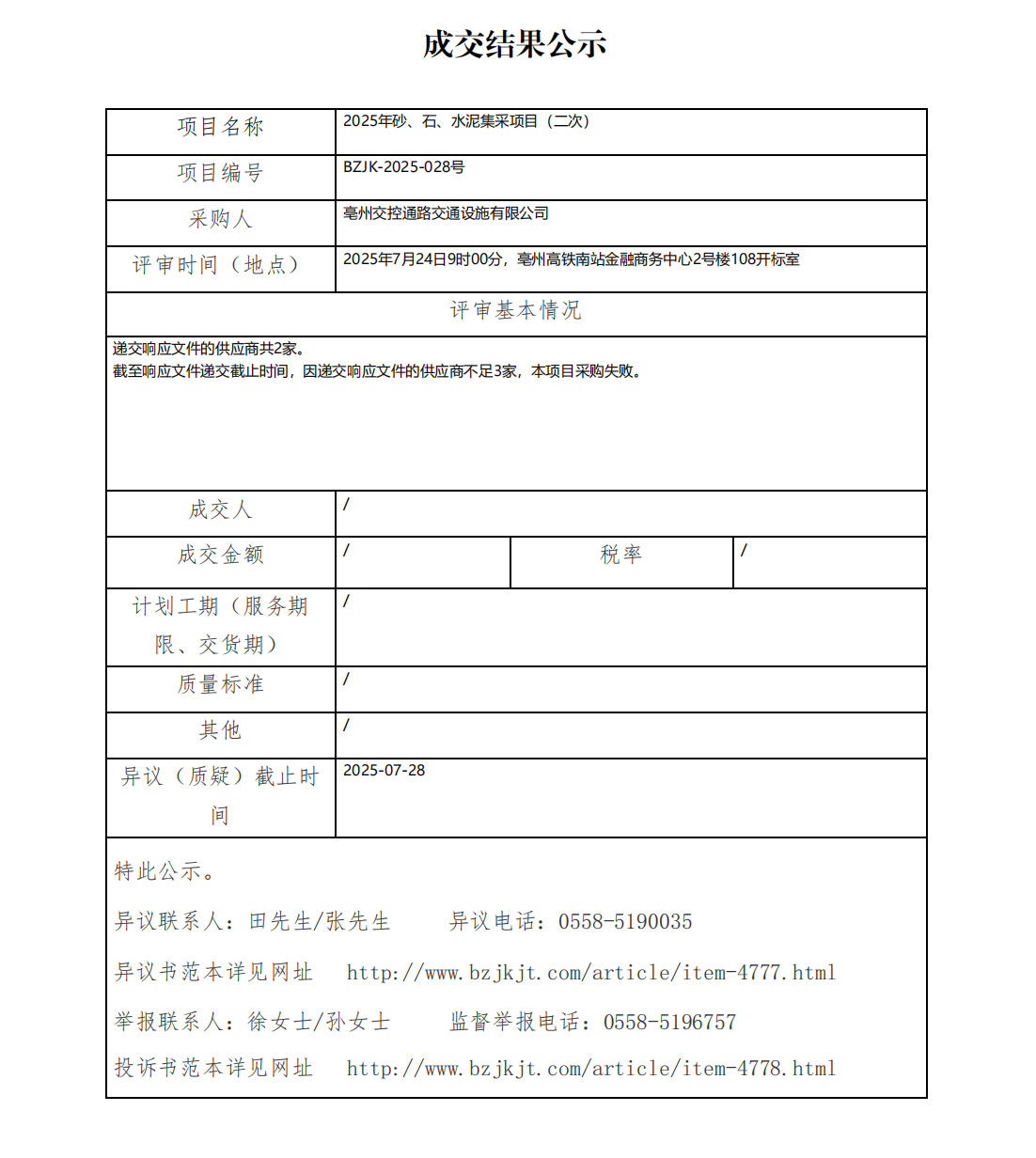 2025年砂、石、水泥集采項(xiàng)目(二次)成交結(jié)果公示