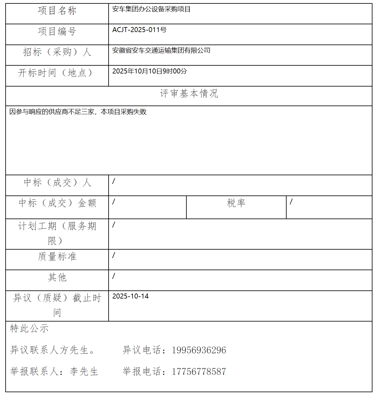 安車集團辦公設(shè)備采購項目中標(biāo)(成交)結(jié)果公示