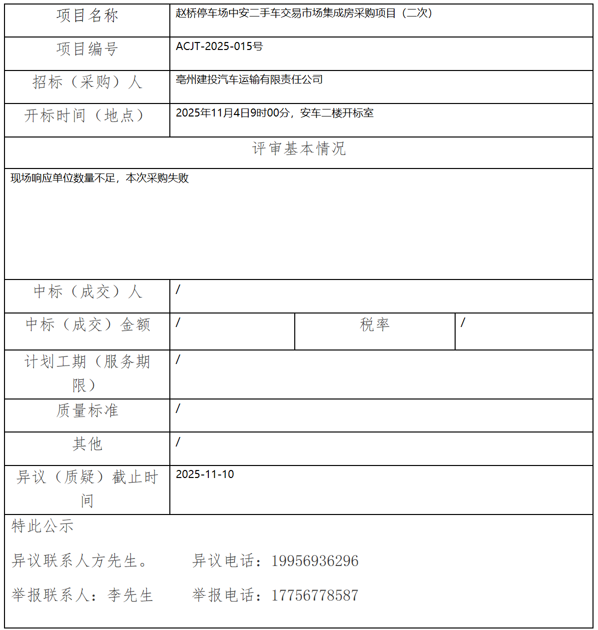 趙橋停車場(chǎng)中安二手車交易市場(chǎng)集成房采購(gòu)項(xiàng)目(二次)中標(biāo)(成交)結(jié)果公示