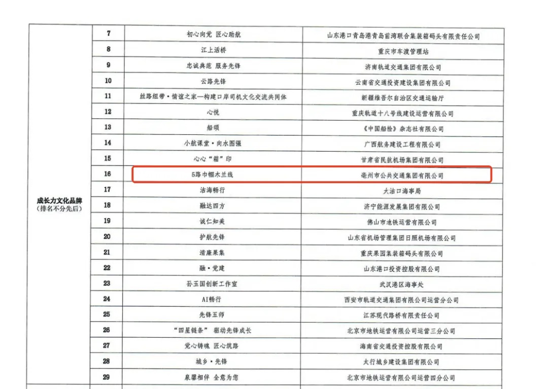 近日,“交通強國 品牌力量”第七屆交通運輸優(yōu)秀文化品牌推選活動結(jié)果公布,亳州公交“5路巾幗木蘭線”榮獲“成長力文化品牌”。