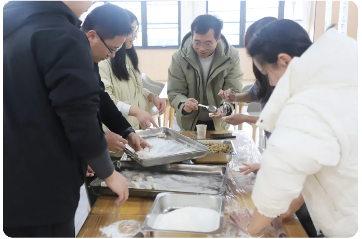 活動(dòng)中,主持人首先向大家簡(jiǎn)要介紹了冬至節(jié)氣的自然特征與文化內(nèi)涵。隨后,大家紛紛挽起衣袖,分工協(xié)作,有的搟皮,有的包餡,手法從生疏到熟練,形態(tài)各異的餃子在巧手中紛紛呈現(xiàn),不僅展現(xiàn)了動(dòng)手的樂(lè)趣,更體現(xiàn)了團(tuán)隊(duì)協(xié)作的默契。