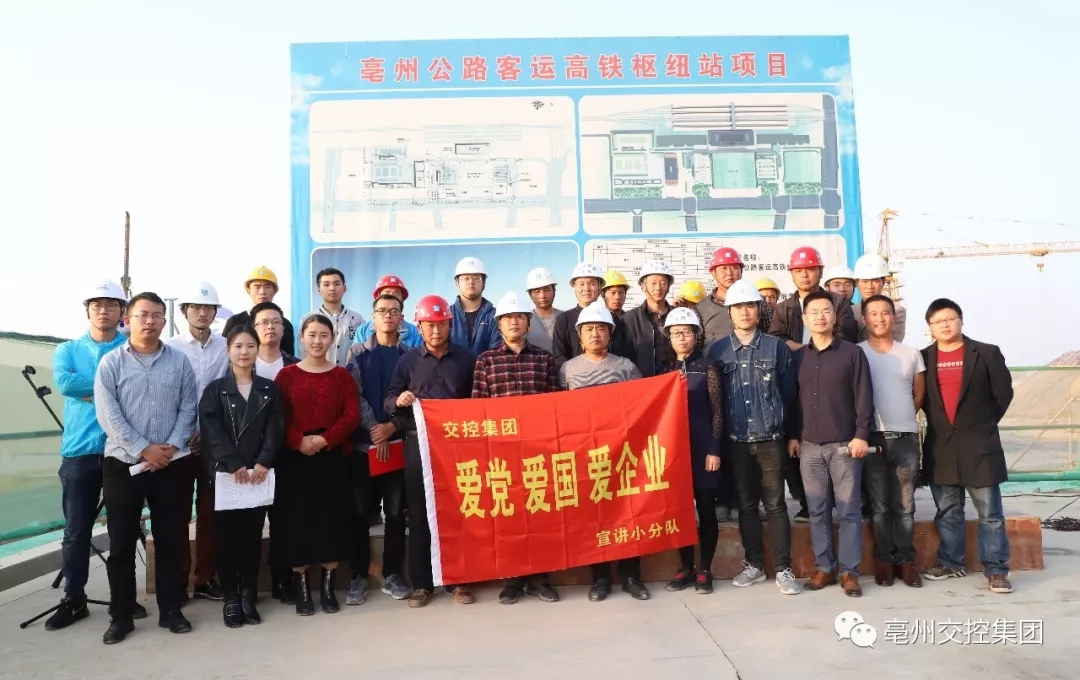 為深入學(xué)習(xí)貫徹黨的十九大精神和集團(tuán)三年行動(dòng)規(guī)劃精髓,10月31日,交控集團(tuán)“愛黨愛國(guó)愛企業(yè)”宣講小分隊(duì)成員來到亳州公路客運(yùn)高鐵樞紐站項(xiàng)目現(xiàn)場(chǎng)開展主題宣講活動(dòng)。集團(tuán)駐項(xiàng)目業(yè)主代表、施工單位和監(jiān)理單位相關(guān)人員參加宣講活動(dòng),信息宣傳部負(fù)責(zé)人劉正廣主持此次宣講活動(dòng)。
