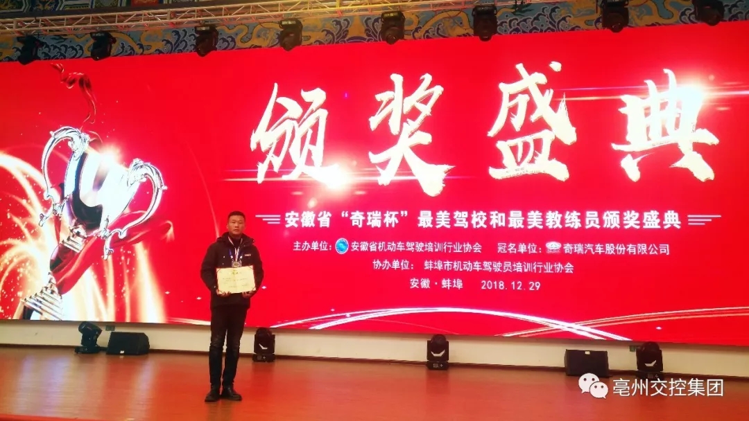 12月29日上午,安徽省最美駕校和最美教練員頒獎盛典舉行,安行天下駕校被評為全省首屆“最美駕校”,安行天下教練員唐強被評為全省首屆“最美教練員”。