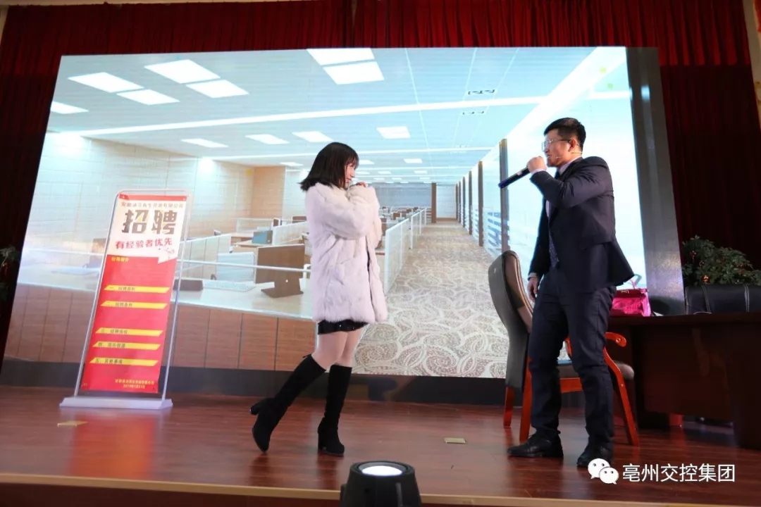 晚會(huì)由交控人自編自導(dǎo)自演,從集團(tuán)微視頻到LOGO3D全息演繹,從盛世歡歌到亳州味公交相聲,從青春洋溢的歌曲串燒再到音樂(lè)MV拜大年……形式多樣,內(nèi)容豐富、貼近實(shí)際。歌唱、舞蹈、橫笛、小品、詩(shī)朗誦等節(jié)目精彩紛呈。整臺(tái)晚會(huì)回首2018年集團(tuán)發(fā)展里程碑,展望“效率年”新作為,激情澎湃、振奮人心。