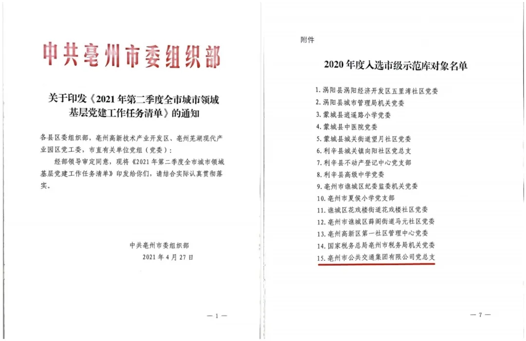近日,市委組織部確定一批城市領(lǐng)域“領(lǐng)航”計劃示范庫名單,亳州公交集團黨總支成功入選2020年度“領(lǐng)航”計劃市級示范庫。 近年來,亳州公交黨總支充分發(fā)揮黨組織的領(lǐng)導核心和政治核心作用,按照全面從嚴治黨要求,扎實推進黨的建設(shè)各方面工作有序、深入...